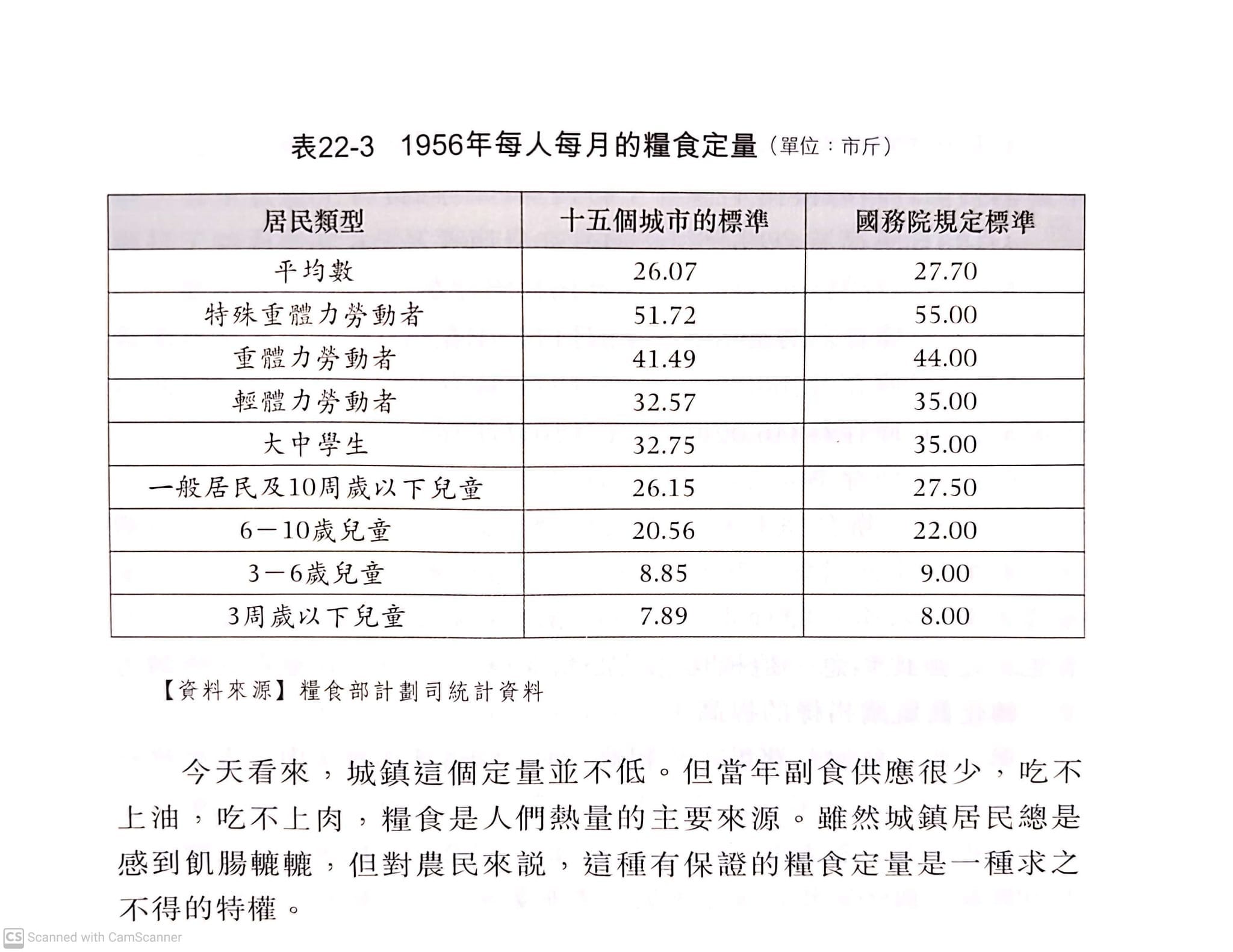在統購統銷中,國家規定了城鎮人口每月的糧食定量。各省為了使自己有一定的餘地,在國務院規定的定量中又扣除一部份,使居民的糧食定量略低於國家的定量。