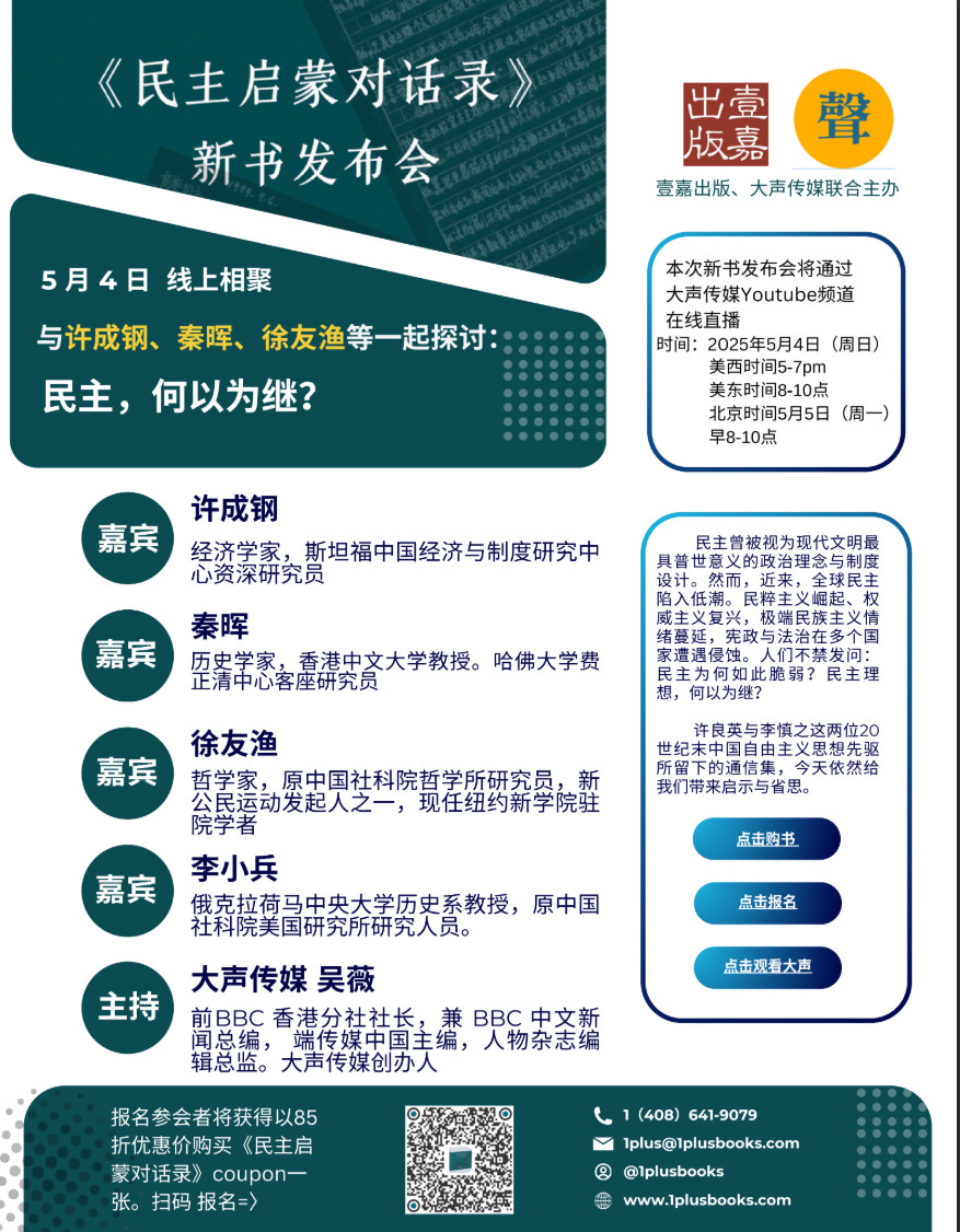 这段话里的意识好一点,但是语言表述上还是太粗糙了,我贴一段 人文中國 Humanities China Academy 发布的专栏文章《李大同 | 民主:作为理想与现实的思考》中的表述,顺便把那片文章里所介绍的新书讯也放一个,虽然研讨会本身已经结束了,但是在大聲的油管频道能找到不完整切片。