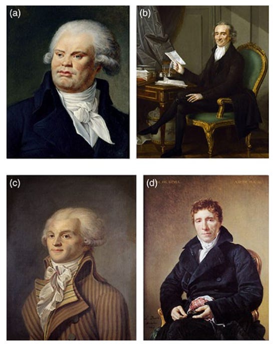 接下来,国民议会自己也开始和民众脱节了。雅各宾派迅速把代表国民变成了,我们代表的才是“真正的”国民,加上当时外部反法联军的军事压力和首领罗伯斯庇尔的个人执念(republic of virtue),迅速走上了血腥打压异见、恐怖统治、拼命征兵、实施戒严、价格管控与余粮收集的道路。权力再次走向了集中、随性、无限制的方向。